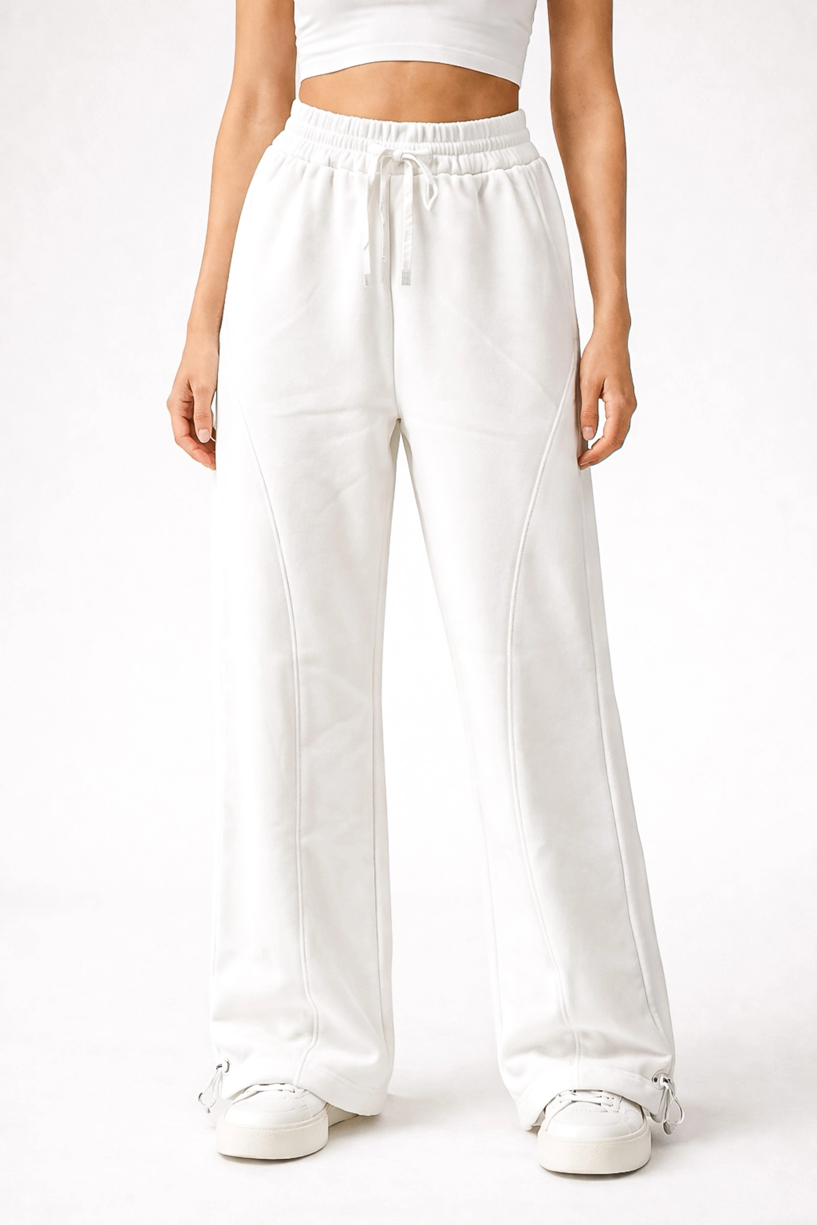 Sheenza Kadın Ekru Bol Paça Eşofman Altı (Bağcıklı, Cepli)