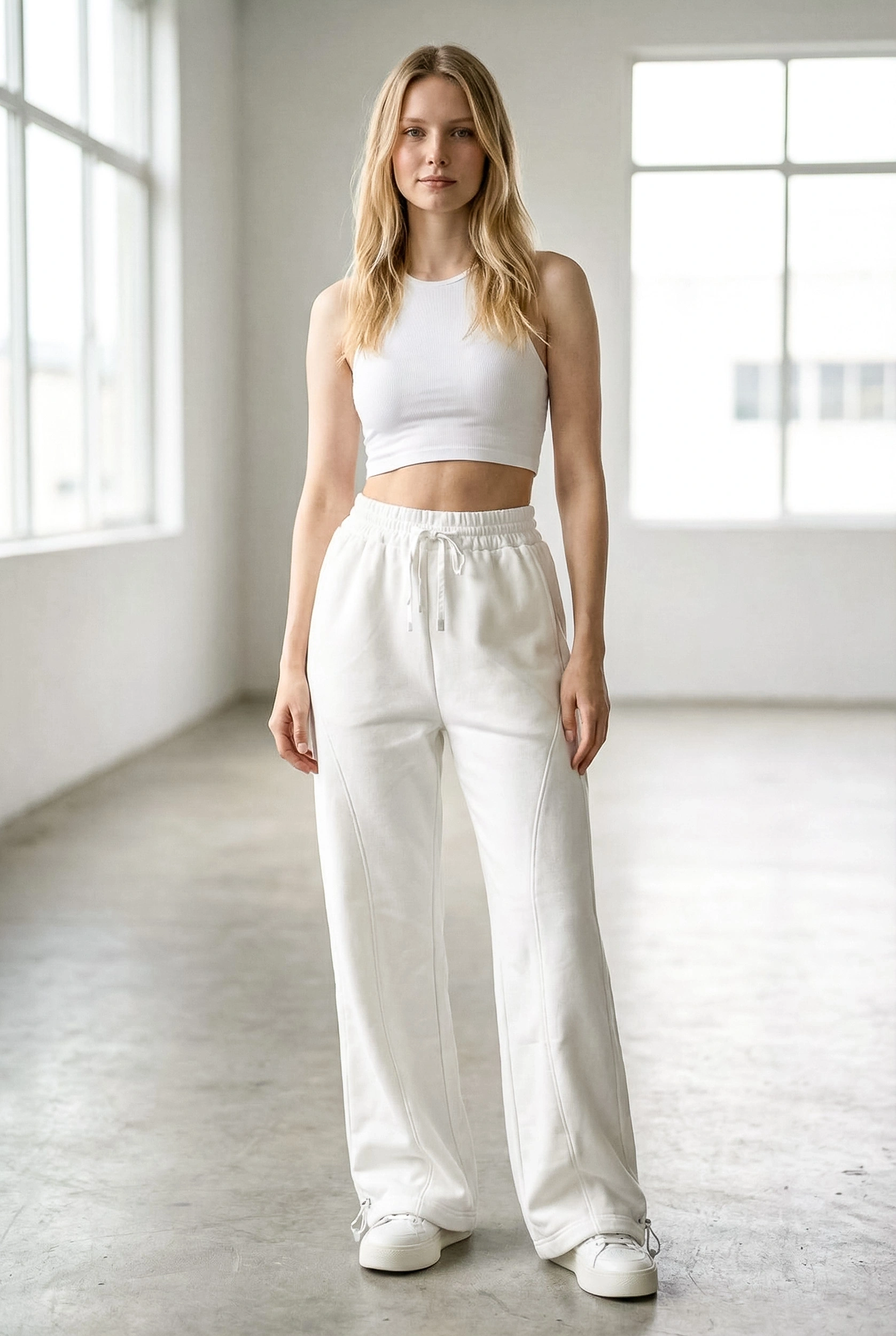 Rahatlığı stil ile buluşturan Sheenza ekru bol paça eşofman altı, lastikli bel ve ayarlanabilir bağcık detayıyla gün boyu konfor sağlar. Düz ve temiz görünümü sayesinde basic tişört, sweatshirt veya crop üstlerle kolayca kombinlenir. Ev giyiminden şehir stiline kadar geniş kullanım alanı sunan bu parça; sneaker ile sportif, oversize üstlerle “relaxed” bir görünüm oluşturur.