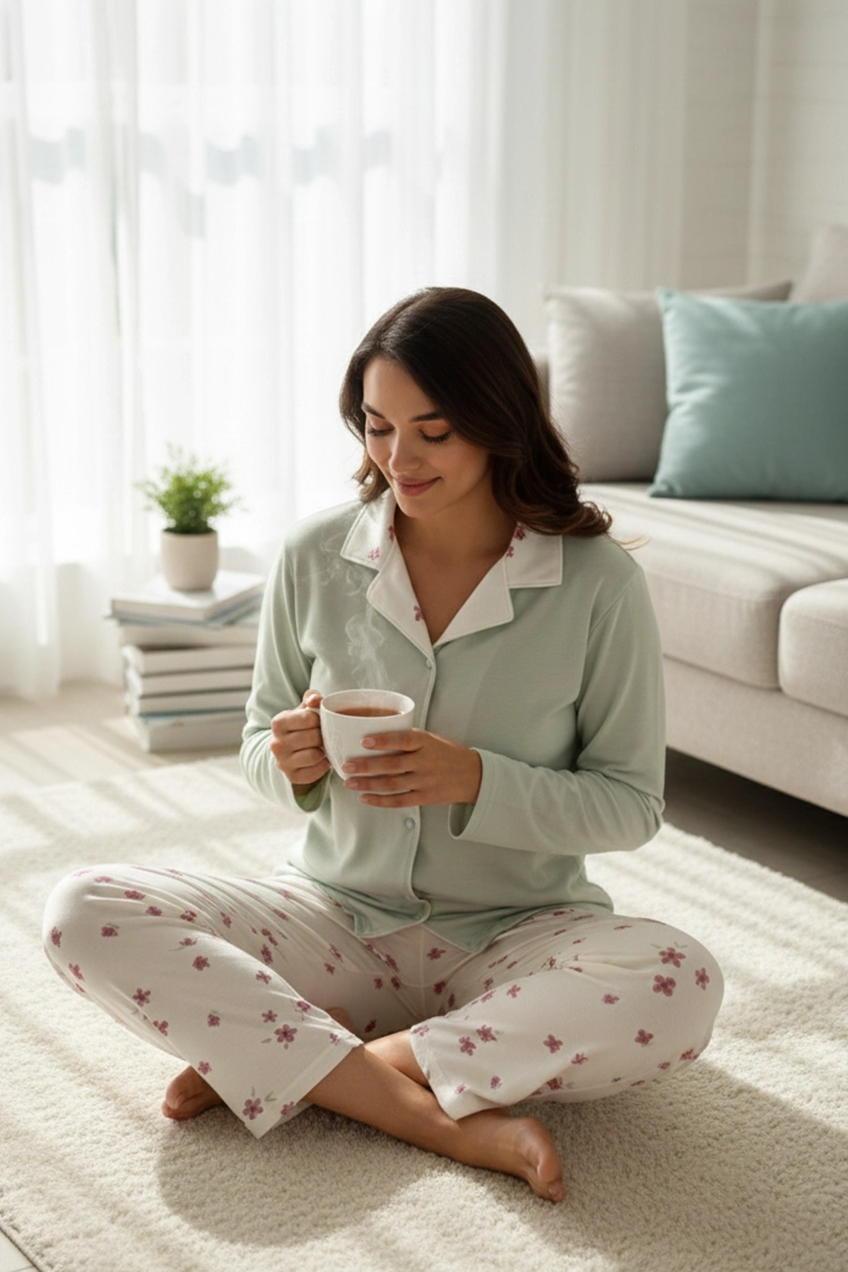 Konfor ve stil arayan kadınlar için ideal bir pijama takımıdır.