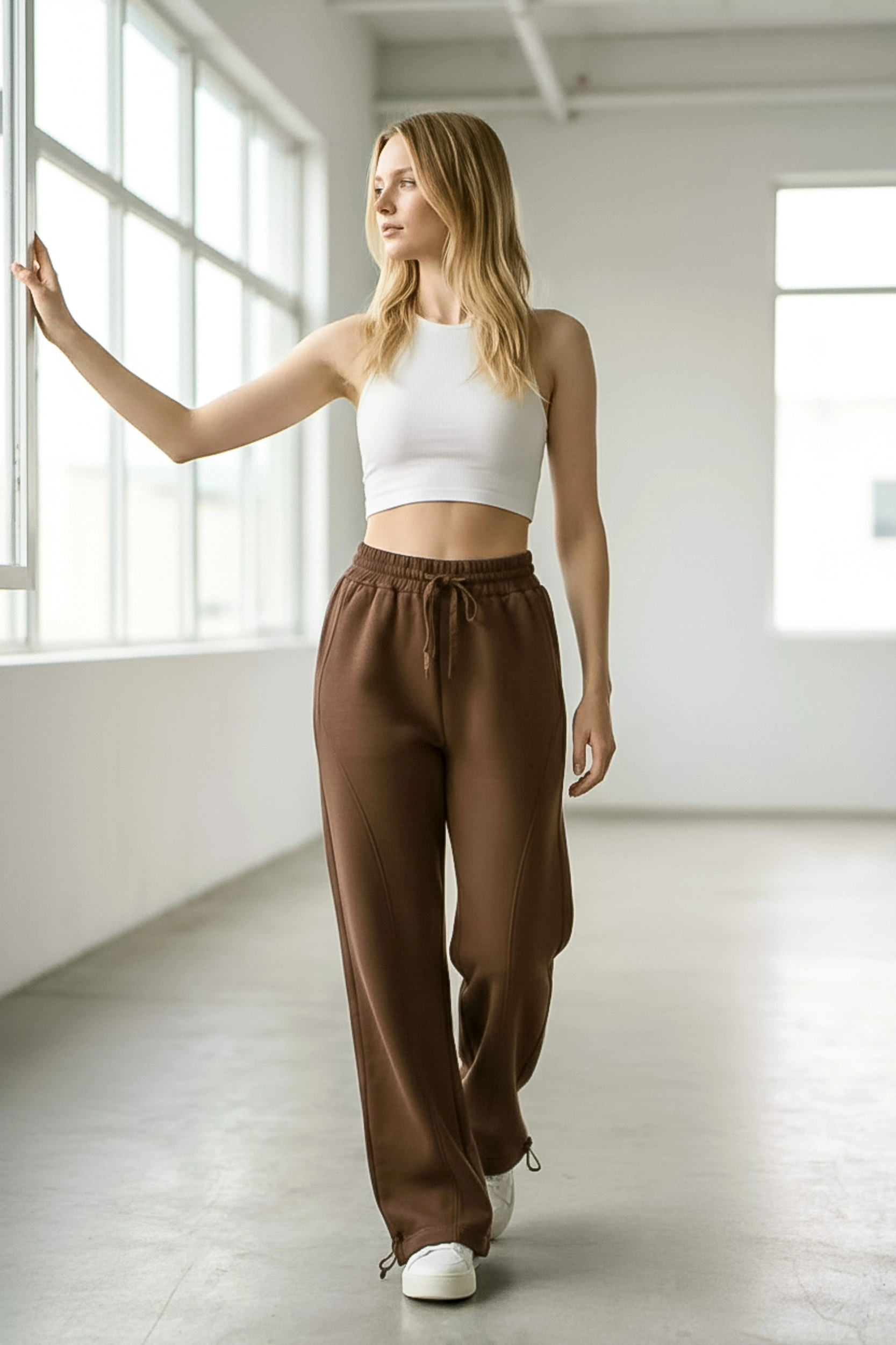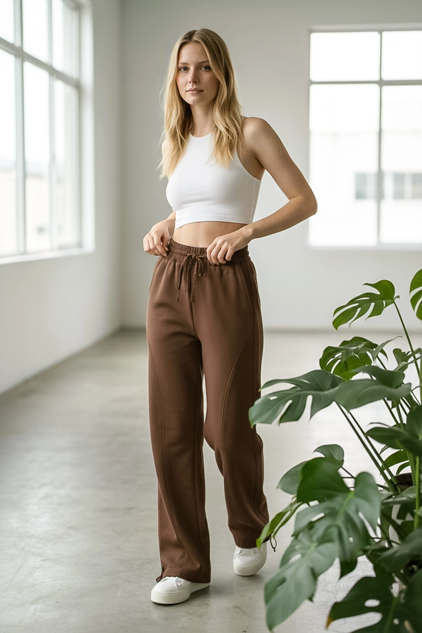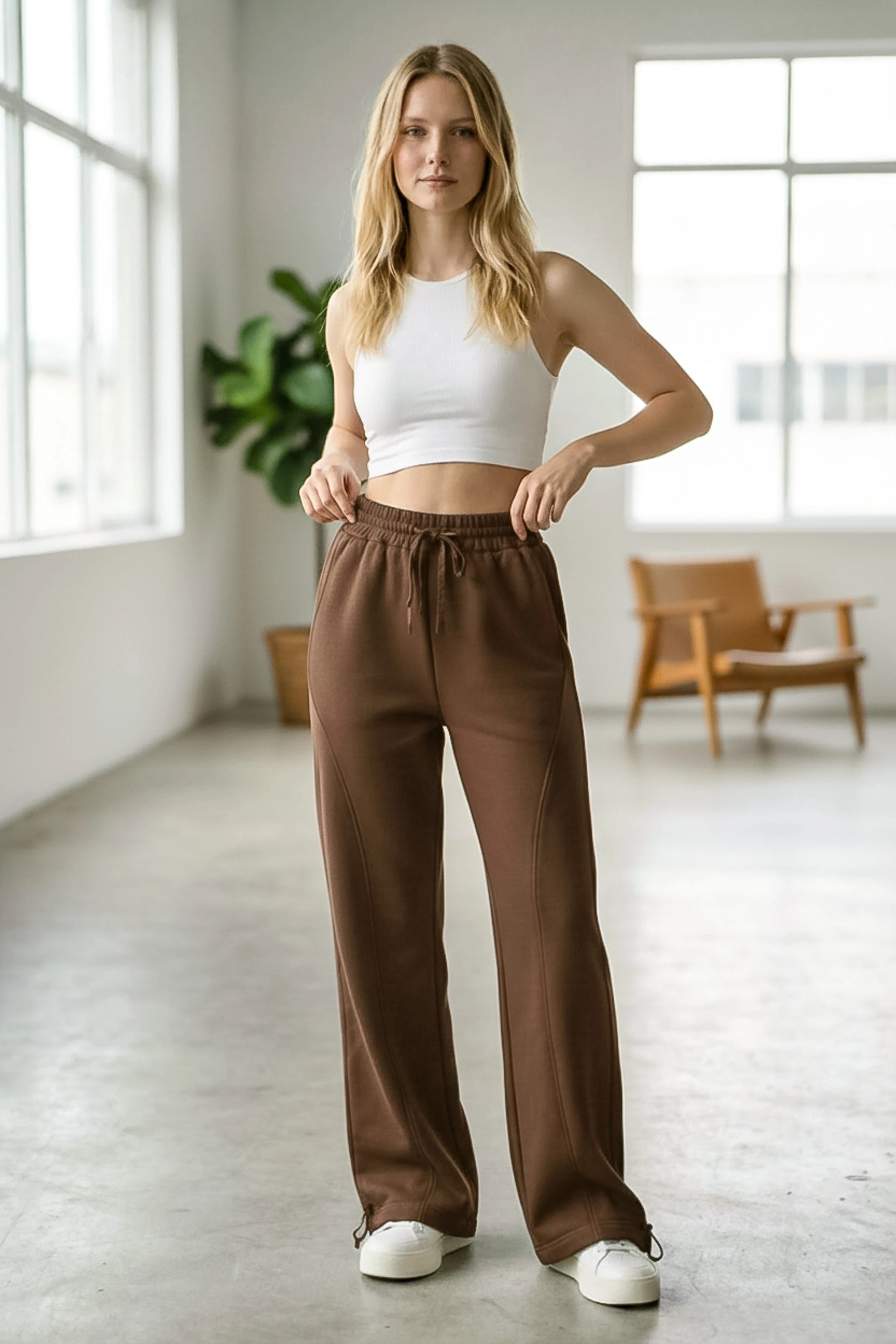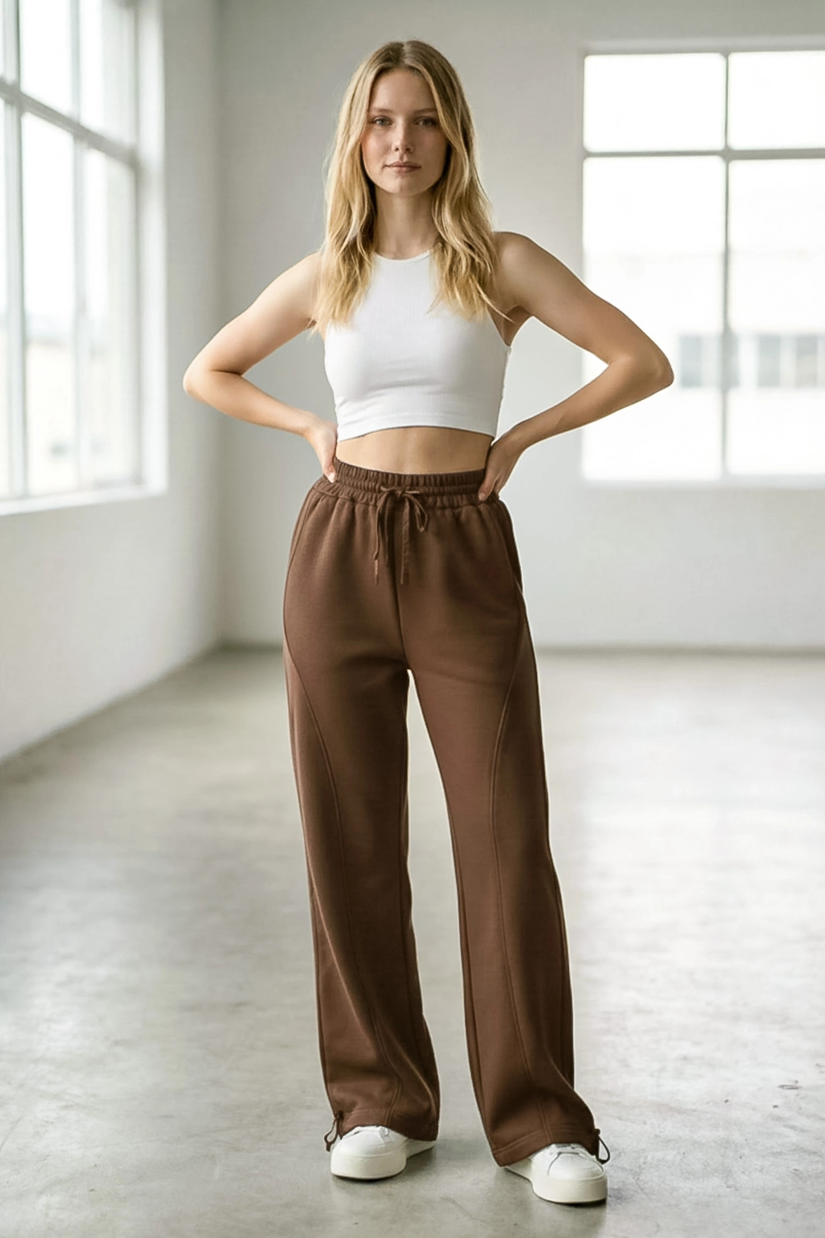 Rahatlığı stil ile buluşturan Sheenza Kahverengi bol paça eşofman altı, lastikli bel ve ayarlanabilir bağcık detayıyla gün boyu konfor sağlar. Düz ve temiz görünümü sayesinde basic tişört, sweatshirt veya crop üstlerle kolayca kombinlenir. Ev giyiminden şehir stiline kadar geniş kullanım alanı sunan bu parça; sneaker ile sportif, oversize üstlerle “relaxed” bir görünüm oluşturur.
