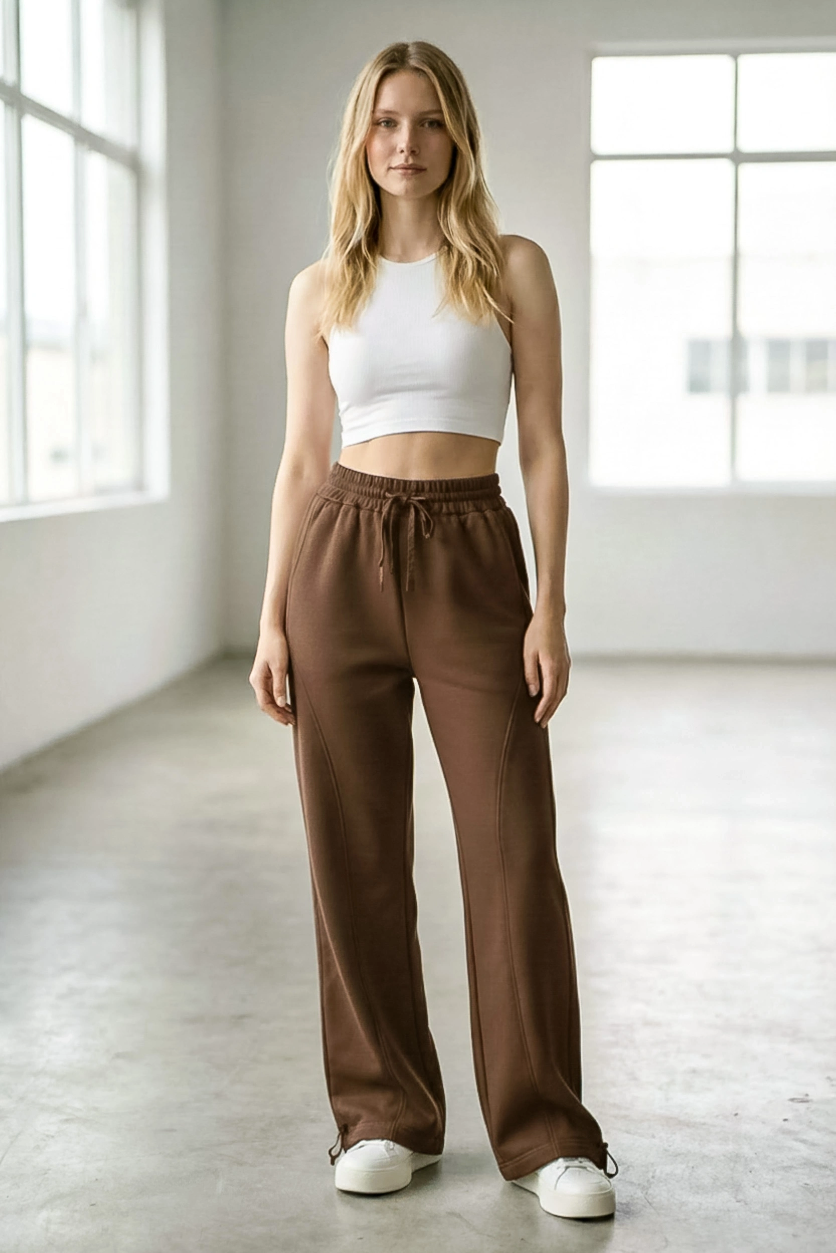 Sheenza Kadın Kahverengi Bol Paça Eşofman Altı (Bağcıklı, Cepli)