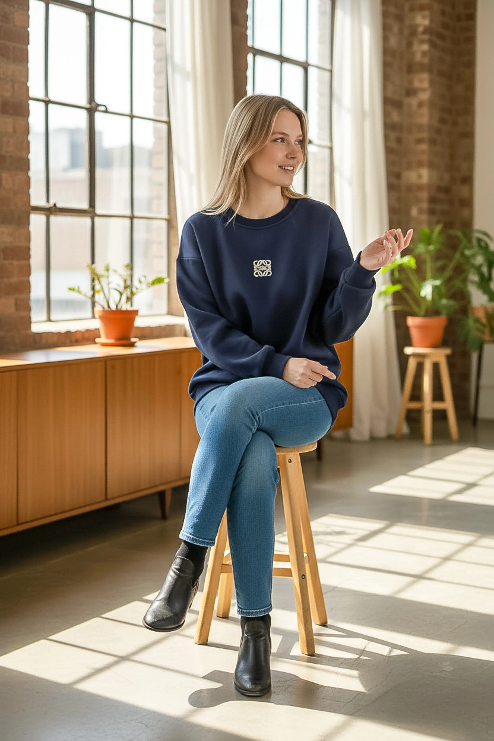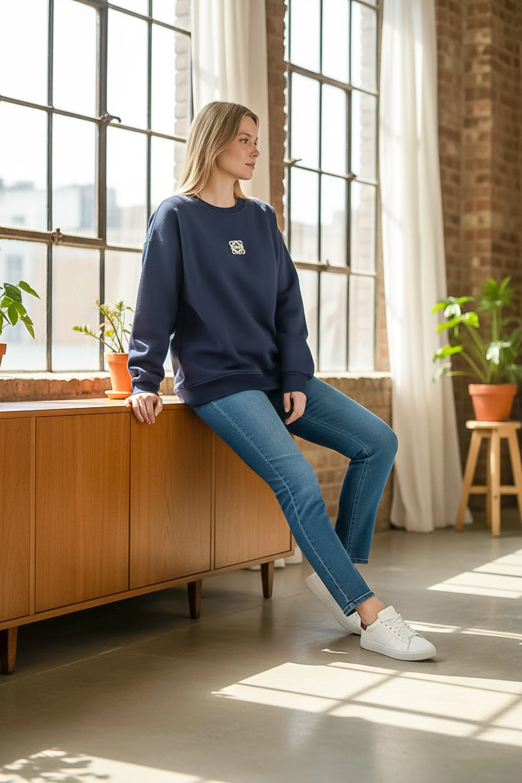 Sade, temiz ve zamansız… Sheenza kadın Lacivert sweatshirt, bisiklet yaka formu ve minimal logo detayı ile günlük kombinlerin en pratik tamamlayıcısı. Jean, tayt veya jogger pantolonlarla kolayca uyum sağlar; sneaker ile sportif, bot ile daha şehirli bir görünüm elde edebilirsin. Düz renk tasarımı sayesinde dolabındaki parçalarla rahatça kombinlenir.